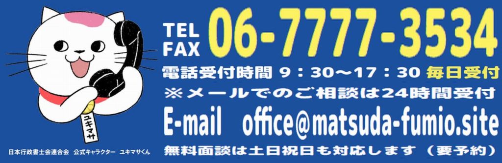ビザ申請(在留資格) | 永住許可 | 帰化申請 | 株式会社設立 | 一般社団法人設立 | 一般財団法人設立 | 特定非営利活動法人設立(NPO法人) | 宅地建物取引業(宅建業) | 宅地建物取引士(宅建士) | 建設業 | 電気工事業 | 解体工事業 | 一般貨物自動車運送事業(運送業 緑ナンバー 出前タクシー) | 貨物軽自動車運送事業(軽貨物 黒ナンバー) | 産業廃棄物収集運搬業 | 産業廃棄物処分業 | 自動車引取業 | 自動車フロン類回収業 | 自動車解体業 | 自動車破砕業 | 道路使用許可 | 道路占用許可 | 古物営業(古物商) | 自動車運転代行業 | 飲食店営業(テイクアウト) | 喫茶店営業 | 菓子製造業(パン屋 ケーキ屋) | 自動車調理営業(キッチンカー) | 自動車食品販売業(移動販売 移動コンピニ 移動スーパー) | 露店営業 | 深夜酒類提供飲食店 | 風俗営業(キャバレー キャバクラ パブ ネットカフェ) | 一般酒類小売業(テイクアウト) | 通信販売酒類小売業 | 酒類卸売業 | 薬局開設(保険薬局 調剤薬局) | 店舗販売業(ドラッグストア 薬店) | 旅行業 | 旅行業者代理業 | 旅行サービス手配業(ランドオペレーター ツアーオペレーター) | 旅館業(ホテル 温泉旅館 簡易宿泊所 カプセルホテル 民宿) | 住宅宿泊事業(民泊)国家戦略特別区域外国人滞在施設経営事業(特区民泊) | マンション管理規約 | 請願書 陳情書 | 新型コロナウイルス関連申請支援(持続化給付金 家賃支援給付金 給付金 支援金) | その他